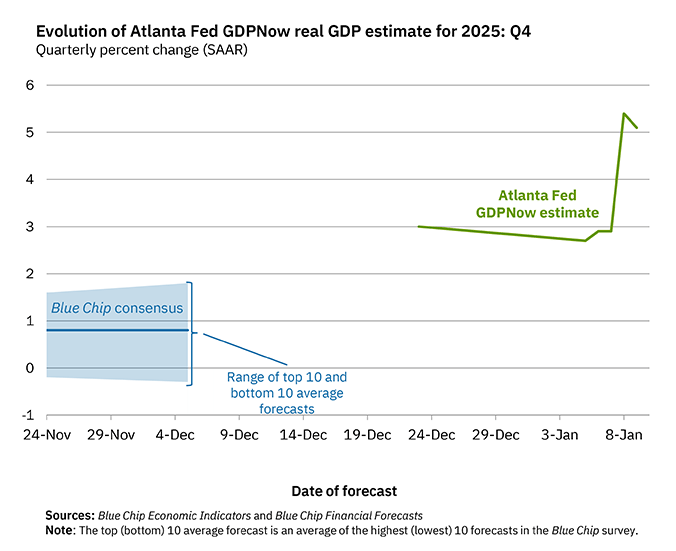 The  Federal Reserve Bank of Atlanta recently released its fourth quarter 2025 annualized real GDP growth estimate, which currently sits at a blazing 5.1% (meaning the nominal GDP growth rate estimate stands at 7.8%). This current estimate of U.S. economic growth stands significantly higher than its long-term forecast real growth rate of 1.8% to 2.1%.