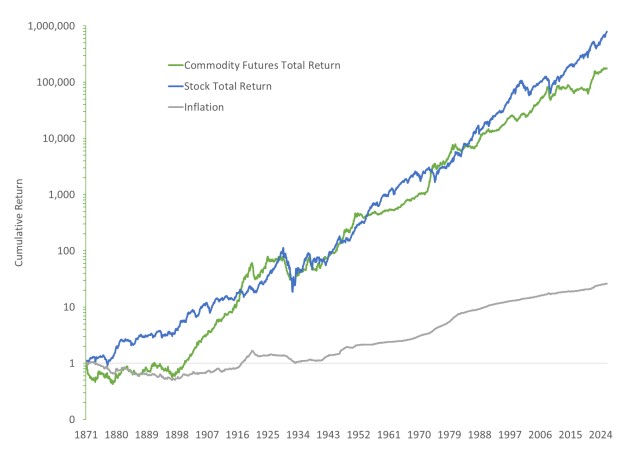 Historically, the returns of a broadly diversified index of commodity futures have provided investors with attractive returns. According to the paper, An Index of Commodity Futures Returns Since 1871 by Janardanan, Qiao, and Rouwenhorst, commodity futures have earned an average annual risk premium of 5.4% over the risk-free rate and a premium over U.S. inflation of more than 6% per annum going back more than 150 years.