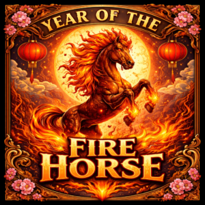 Following this sexagenary cycle and combining the designated animal sign and element, 2026 represents the year of the Fire Horse.