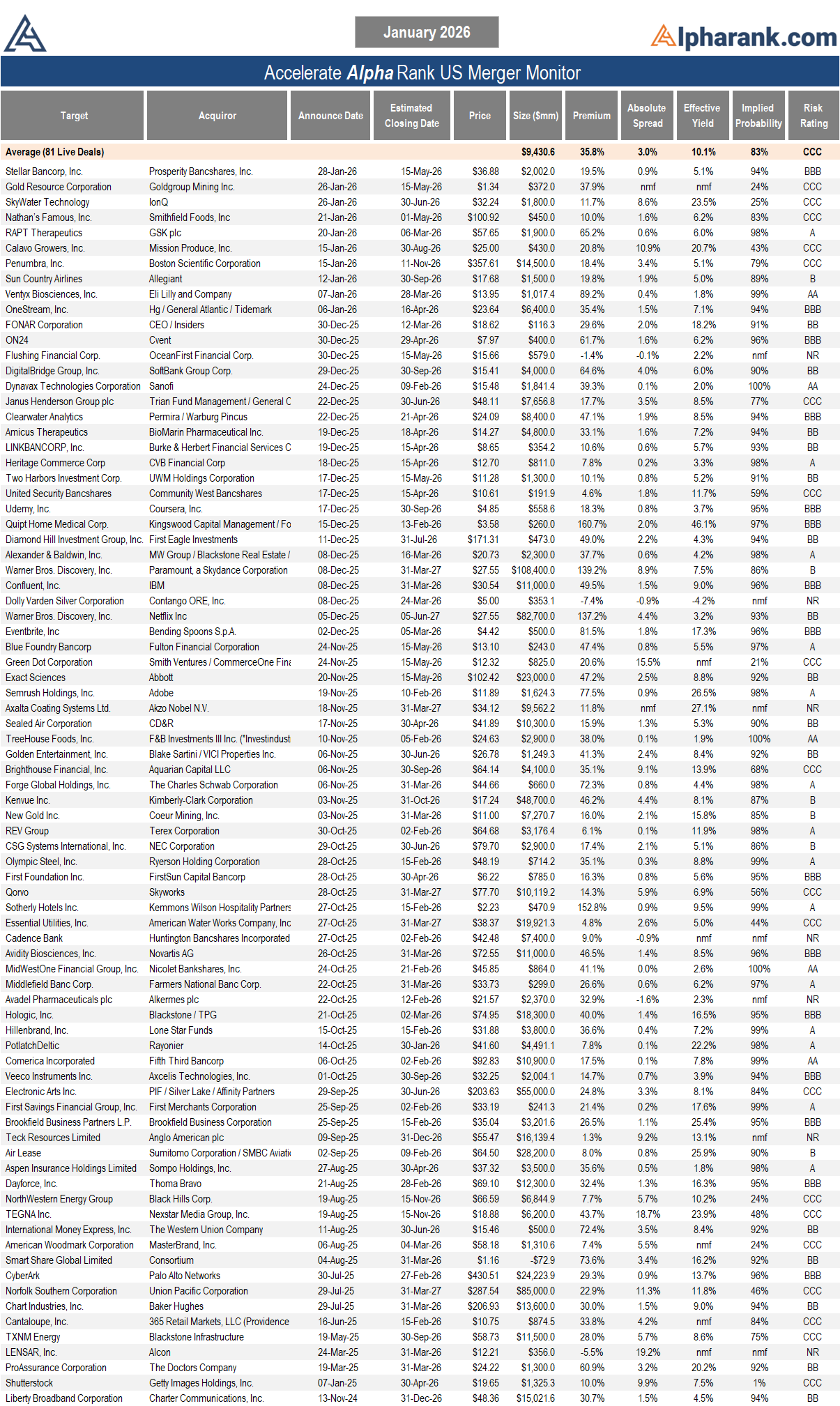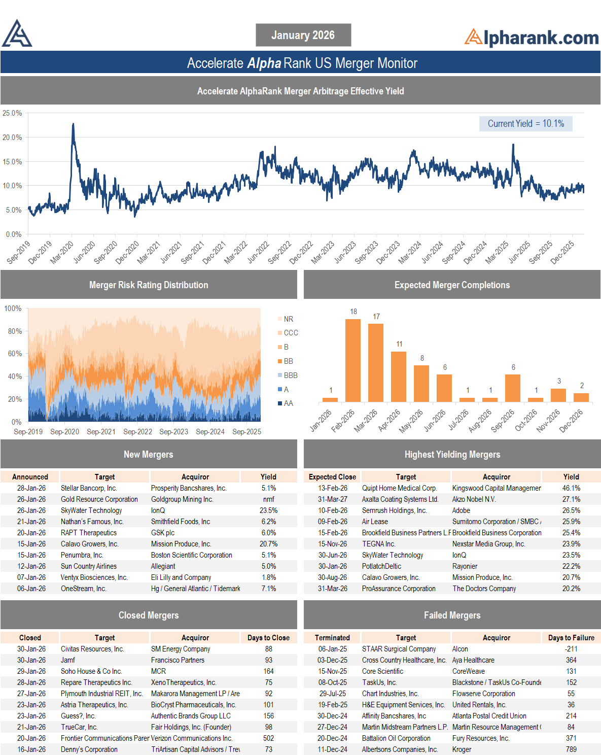 The AlphaRank merger analytics database is utilized in running the Accelerate Arbitrage Fund (TSX: ARB), which may have positions in some of the securities mentioned.